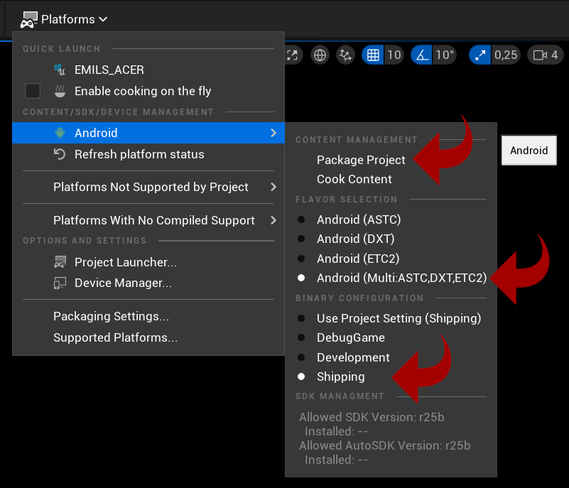 Exporting Android Apps in UE5