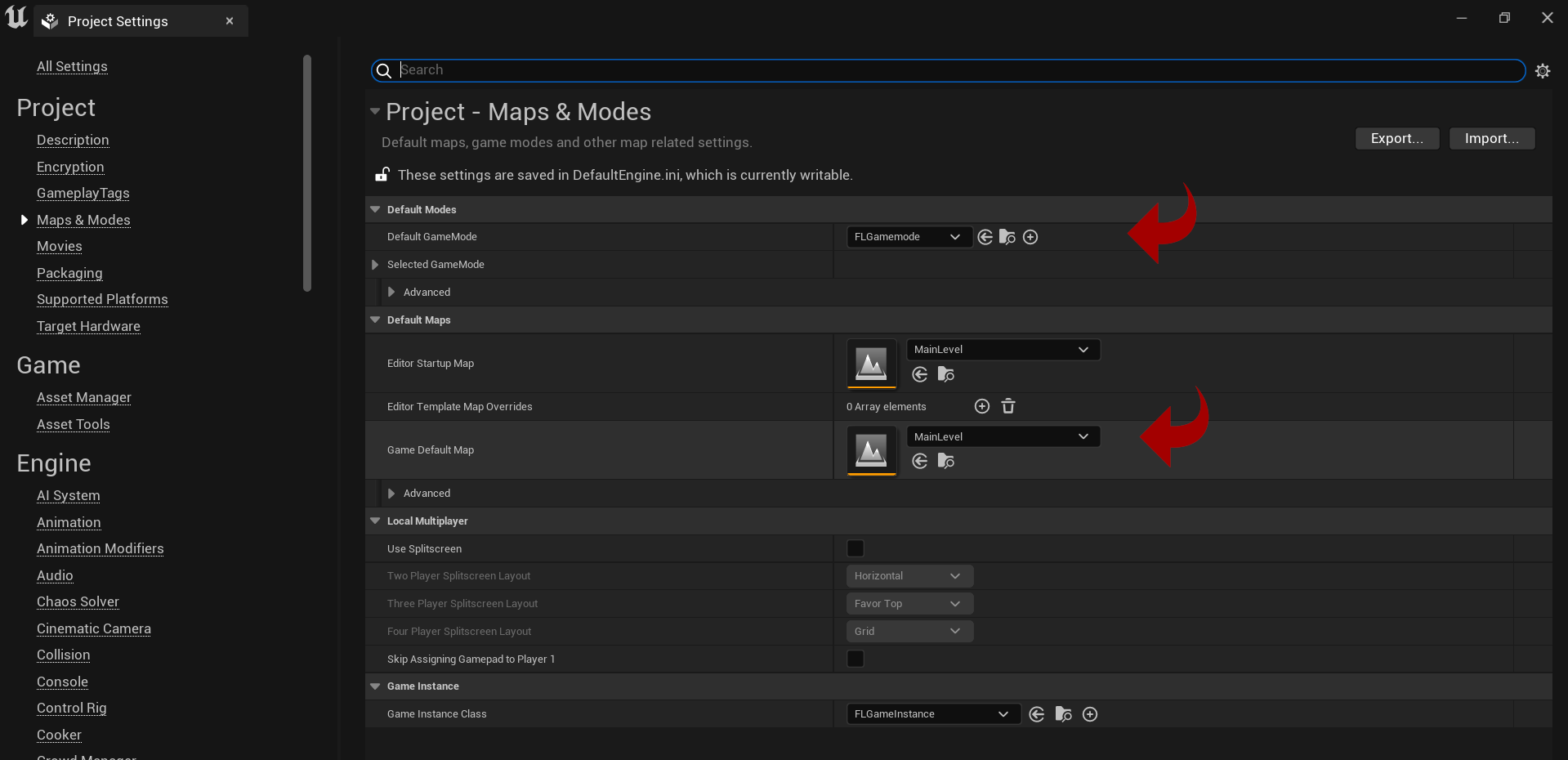 - Define the Default GameMode and the DefaultMap
