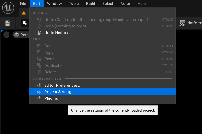 Inside Unreal Engine open Edit > Project Settings