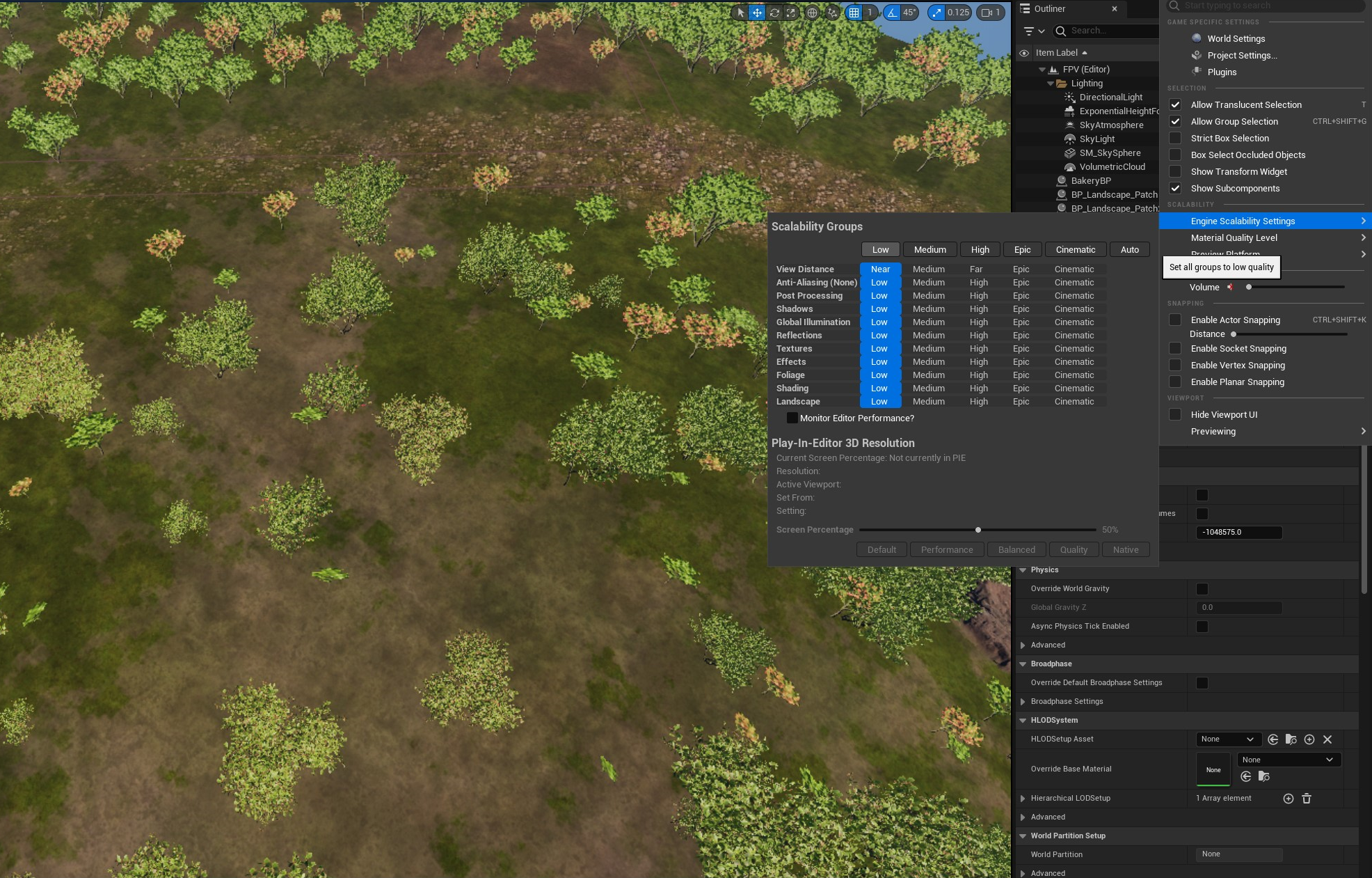 To further enhance performance, you can adjust your scalability settings. This change only impacts the editor and will not affect the built game.